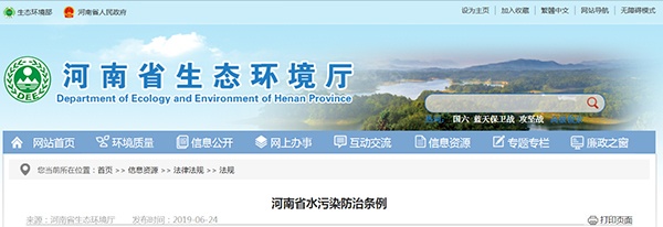 河南省第十三屆人民代表大會常務委員會第十次會議于2019年5月31日審議通過了河南省水污染防治條例,自2019年10月1日起施行。第一條 為了保護和改善環境,防治水污染,保護水生態,保障飲用水安全,維護公眾健康,推進生態文明建設,促進經濟社會綠色可持續發展,根據《中華人民共和國水污染防治法》和有關法律、行政法規規定,結合本省實際,制定本條例。