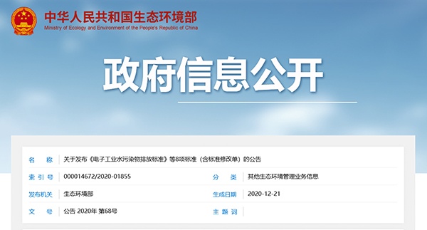 轉(zhuǎn)發(fā)生態(tài)環(huán)境部關(guān)于發(fā)布《電子工業(yè)水污染物排放標(biāo)準(zhǔn)》等8項標(biāo)準(zhǔn)(含標(biāo)準(zhǔn)修改單)的公告