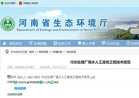 2020年1月21日,河南省生態環境廳、河南省市場監督管理局聯合發布了《污水處理廠尾水人工濕地工程技術規范》。自2020年4月21日起實施。