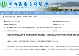 2020年1月3日,河南省生態環境廳印發了《提升危險廢物環境監管能力、利用處置能力和環境風險防范能力工作方案》
