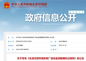 2019年11月26日,生態環境部發布了關于發布《生活垃圾焚燒發電廠自動監測數據標記規則》的公告