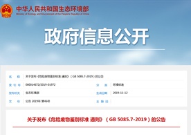 生態環境部關于發布《危險廢物鑒別標準 通則》(GB 5085.7-2019)的公告