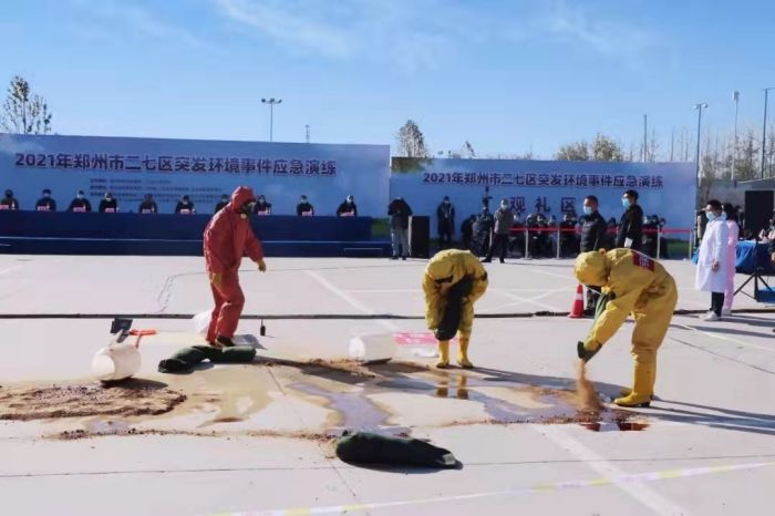 為全面檢驗突發環境事件應急預案的針對性和實用性,進一步提升突發環境事件應急處置能力和水平。11月25日上午,由鄭州市二七區人民政府主辦,二七生態環境分局、二七區應急管理局、江蘇潤環環境科技有限公司河南分公司承辦的二七區2021年突發環境事件應急演練在金水源街道辦事處轄區舉行。現場共90余人觀摩了此次演練。