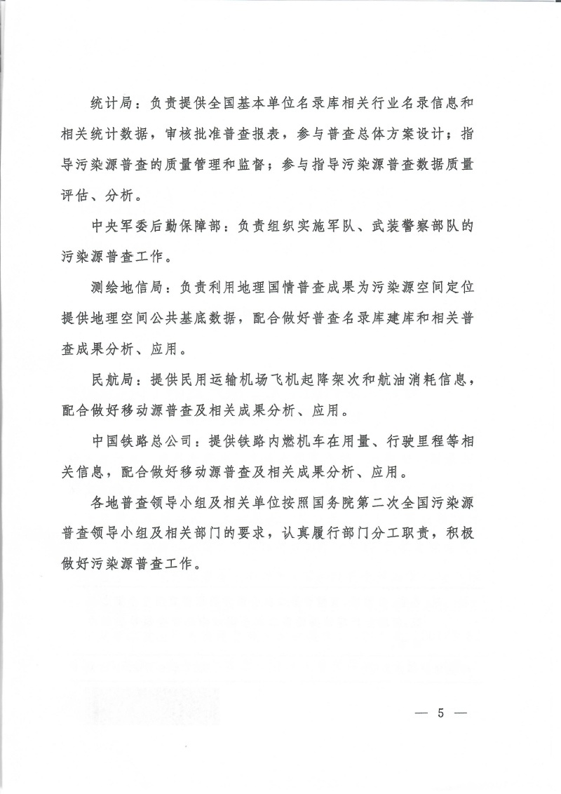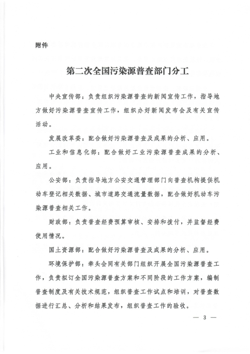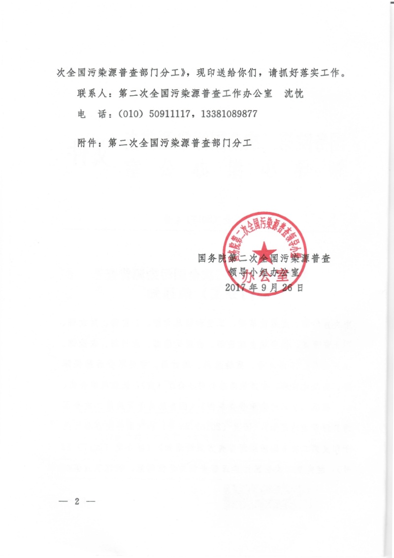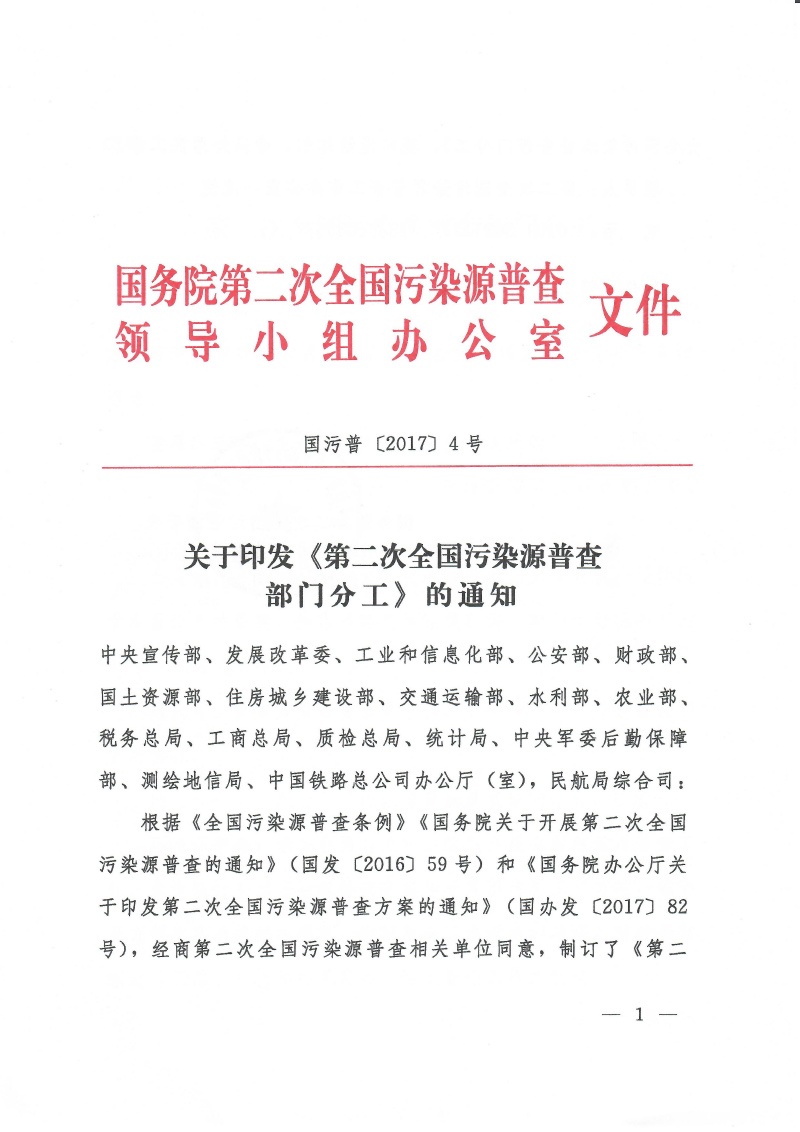 國污普【2017】4號關(guān)于印發(fā)《第二次全國污染源普查部門分工》的通知