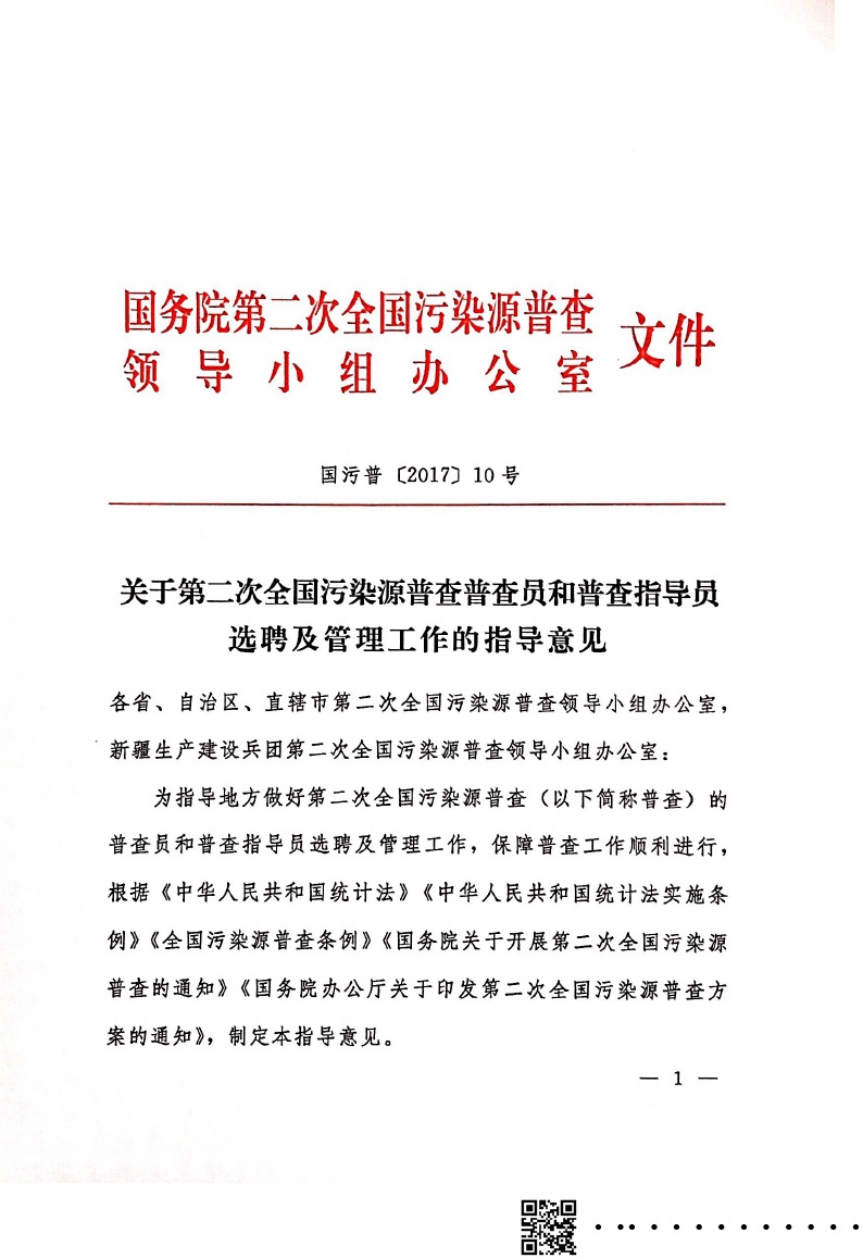 國污普【2017】10號關于第二次全國污染源普查普查員和普查指導員選聘及管理工作的指導意見