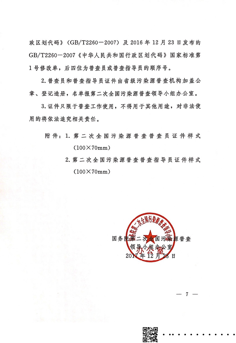 上一篇:國污普【2017】4號關于印發《第二次全國污染源普查部門分工》的通知 下一篇:國污普【2017】11號關于做好第三方機構參與第二次全國污染源普查工作的通知