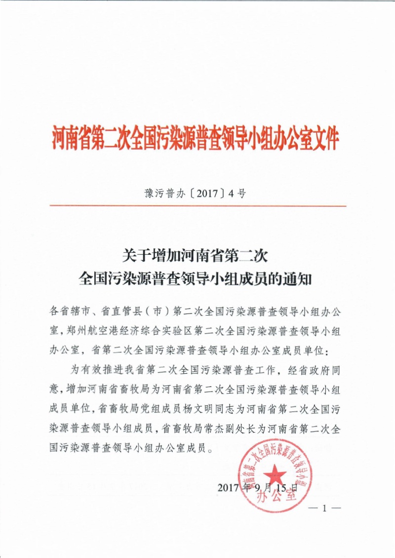 豫污普辦【2017】4號(hào)關(guān)于增加河南省第二次全國污染源普查領(lǐng)導(dǎo)小組成員的通知