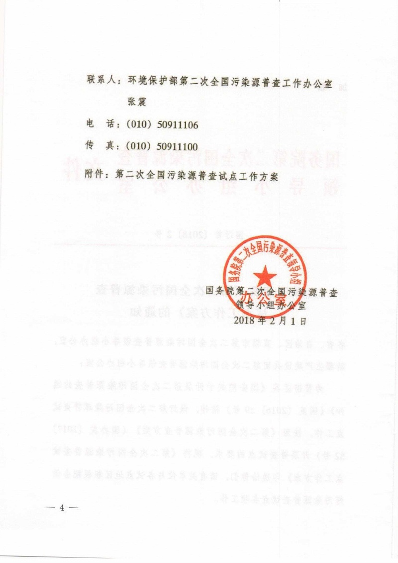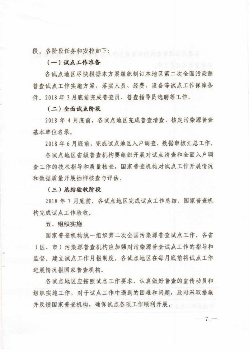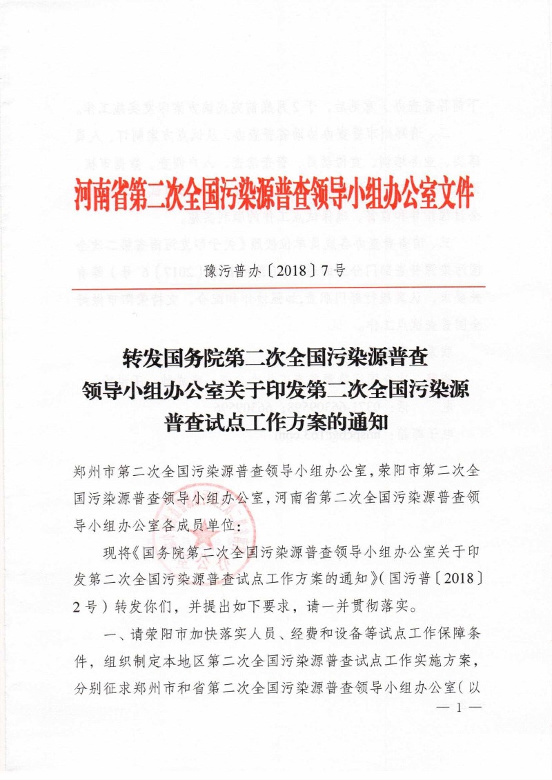 豫污普辦【2018】7號河南省第二次全國污染源普查領(lǐng)導小組辦公室轉(zhuǎn)發(fā)國務(wù)院第二次全國污染源普查領(lǐng)導小組辦公室關(guān)于印發(fā)第二次全國污染源普查試點工作方案的通知
