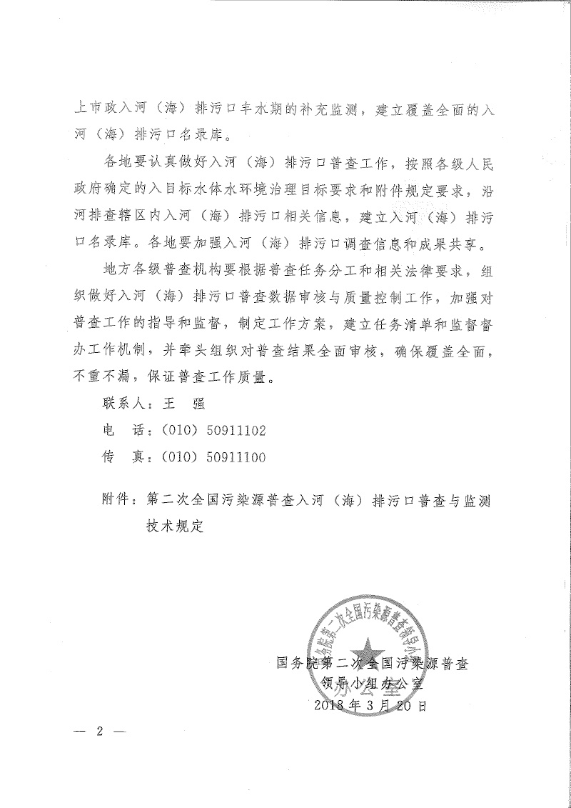 豫污普辦【2018】12號轉(zhuǎn)發(fā)國務(wù)院第二次全國污染源普查領(lǐng)導(dǎo)小組辦公室關(guān)于開展第二次全國污染源普查入河(海)排污口普查與監(jiān)測工作的通知
