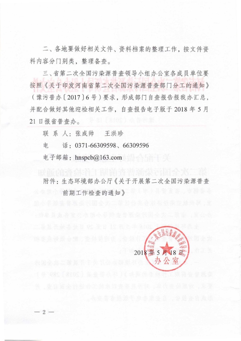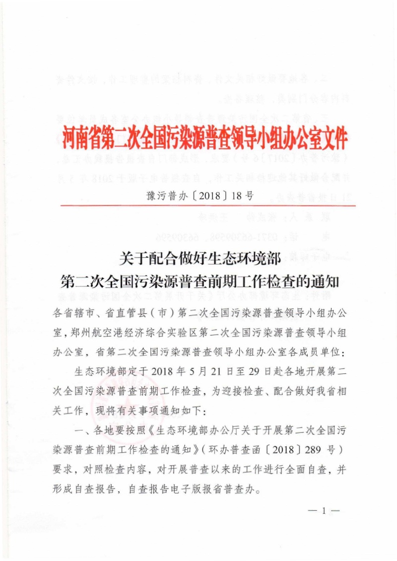 豫污普辦【2018】18號(hào)關(guān)于配合做好生態(tài)環(huán)境部第二次全國污染源普查前期工作檢查的通知