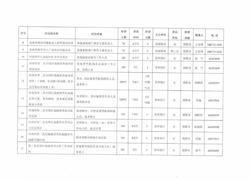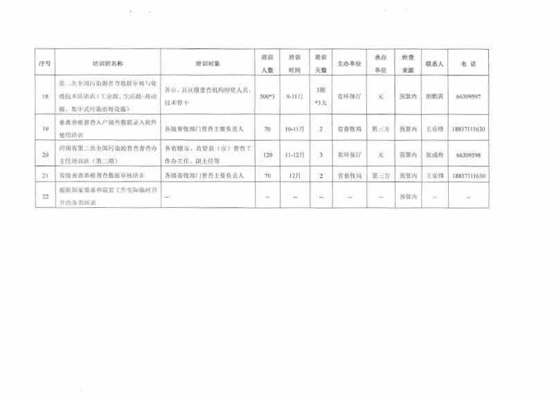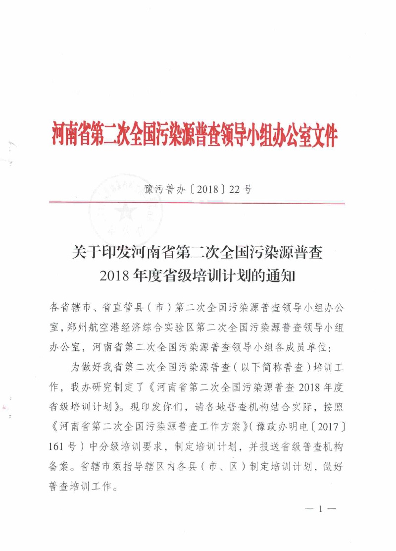 豫污普辦【2018】22號關于印發河南省第二次全國污染源普查2018年度省級培訓計劃的通知
